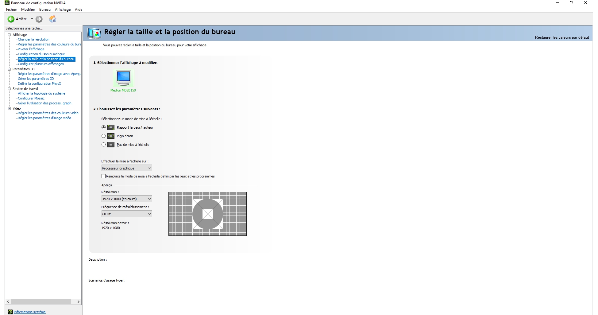 Je comprends ton raisonnement est logique, le fait que la taille augmente les pixels, cependant, quand je lance mon jeu en plein écran (en cochant "changer la résolution" il apparaît avec la bonne qualité graphique et le jeu prend pourtant quasi tout l'écran mais ça apparaît juste comme décalé, disons on ne voit pas une partie du contour sur la gauche (bien regarder la photo que j'ai pris avec mon tel, à droite on voit la bordure pas à gauche), on dirait donc juste un léger manque d'étirement de l'image du jeu seulement. Et c'est là où c'est impossible d'étirer, pour quelques cm...